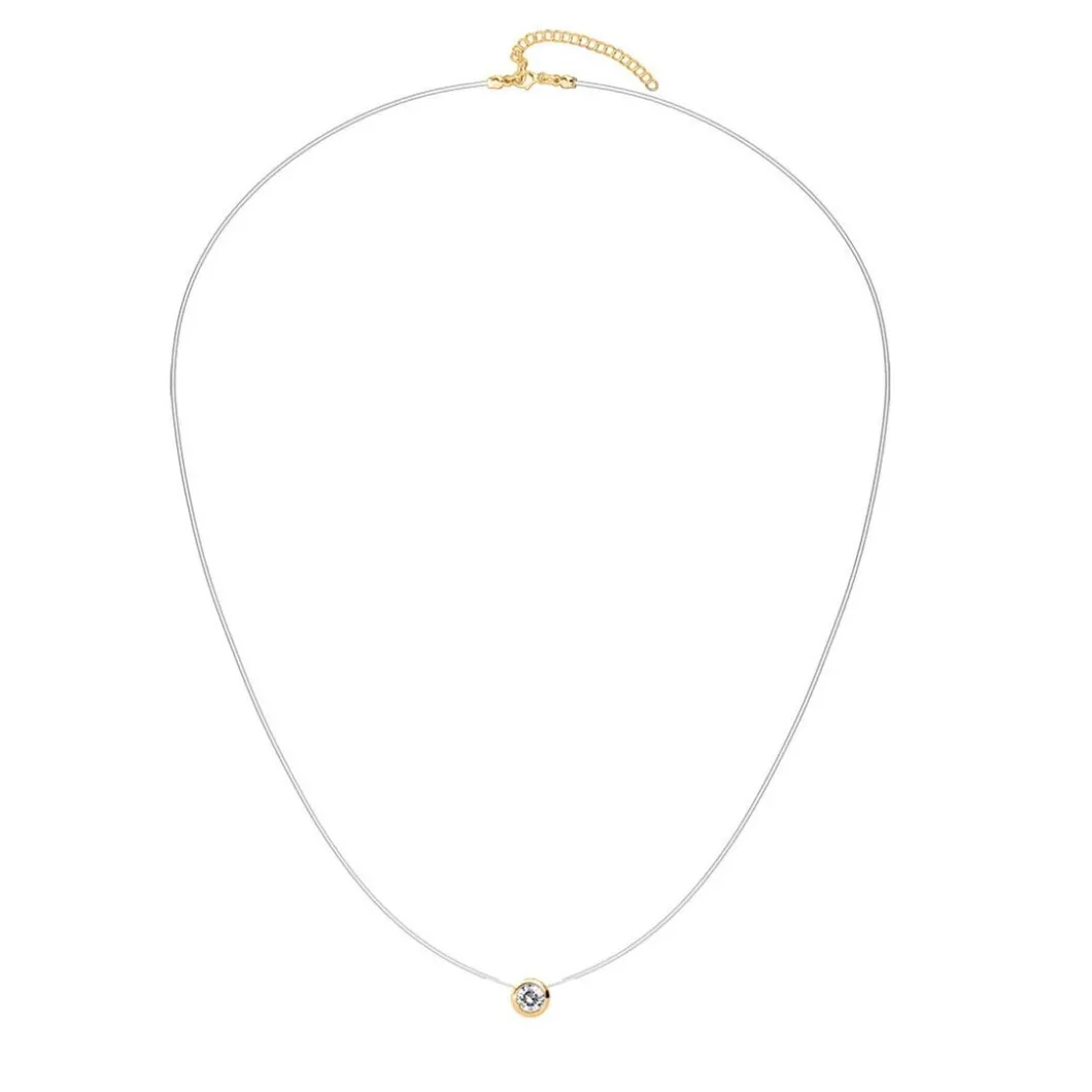Ce Collier DP0271-G-C MYC-Paris se distingue par sa chaîne fine et légère. Il présente également un pendentif central en pierre colorée, entouré d’une plaque en argent brillant.