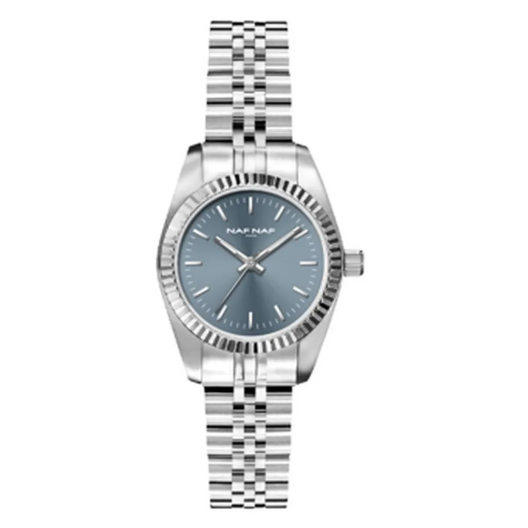 Adoptez un style à la fois chic et moderne avec la montre femme Naf Naf référence NAFW1053. Elle se caractérise par son bracelet et son boîtier en acier de couleur argent. Le boîtier rond mesure 27 mm de diamètre, une taille idéale pour un poignet féminin. Cette montre est dotée d’un affichage analogique, pour une lecture de l’heure simplifiée et élégante. Quant au bracelet, il est muni d’une boucle déployante pour un port sûr et confortable. Soucieuse de la durabilité, cette montre est alimentée par un mouvement quartz. Pour finir, son verre minéral garantit une excellente résistance aux rayures.