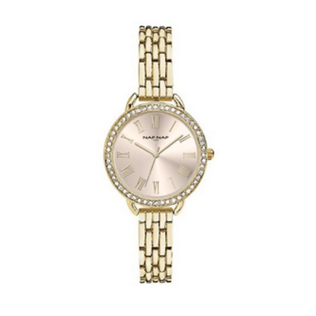 L’élégance se distingue par ses détails. C’est pourquoi cette Montre Femme Naf Naf – NAFW1102 en Acier Doré scintillant fait tourner les têtes. De genre féminin, son boîtier rond d’un diamètre de 26 mm ajoute une touche de délicatesse. L’affichage analogique est parfaitement clair sous son verre minéral résistant. Son mouvement à quartz garantit une précision impeccable. Le bracelet en acier doré, de la même brillante teinte que le boîtier, se ferme aisément grâce à une boucle déployante. Cette montre Naf Naf, par sa couleur Doré, se coordonne avec toutes vos tenues pour une touche sophistiquée.