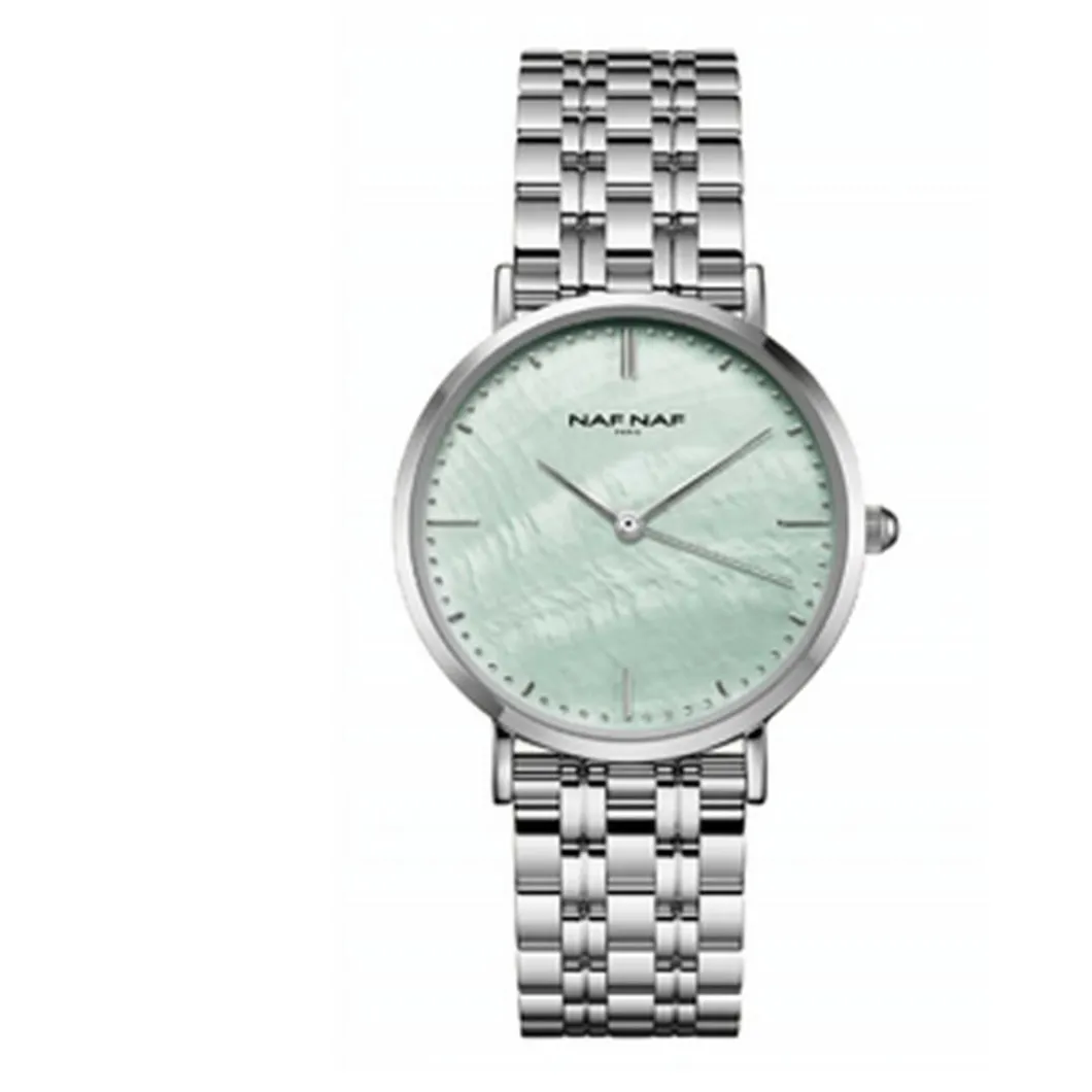 Cette montre femme élégante, Naf Naf – NAFW1121, présente un design brillant avec une touche de sophistication. De couleur argentée, elle possède un boîtier rond en acier de 32 mm de diamètre pour un style épuré. Son bracelet en acier argenté permet un maintien robuste tout en ajoutant une luminosité sophistiquée au poignet. L’affichage analogique et le mouvement quartz offrent une précision sans faille de l’heure. Utilisant un verre minéral pour une clarté optimale et une résistance accrue aux rayures, cet accessoire est muni d’une boucle déployante pour une fermeture en toute sécurité. L’harmonie du boîtier et du bracelet de couleur argent offre à cette montre une allure chic et moderne. Cette pièce unique est le complément idéal pour un style féminin et trendy.