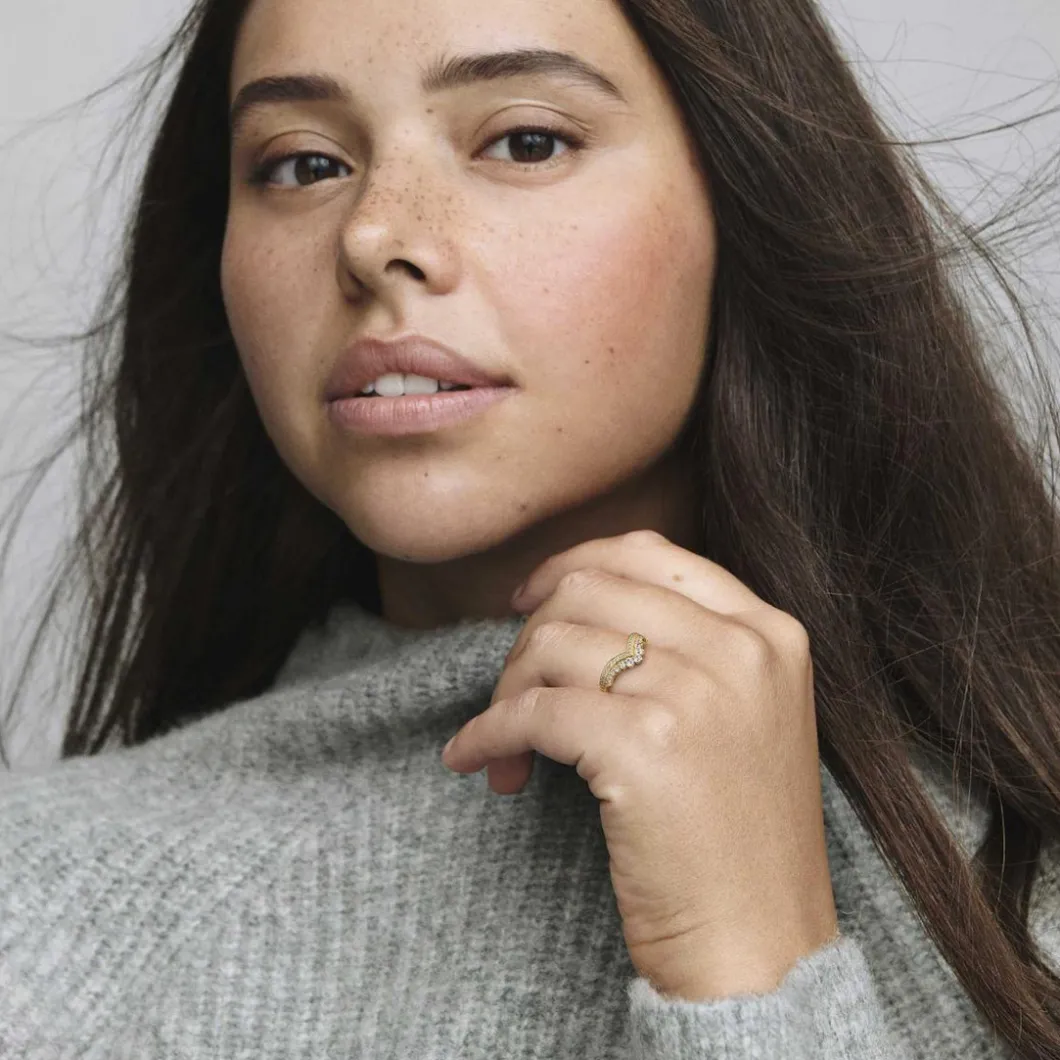 Caractéristiques Bague Chevron Double pavée Pandora Timeless – Doré