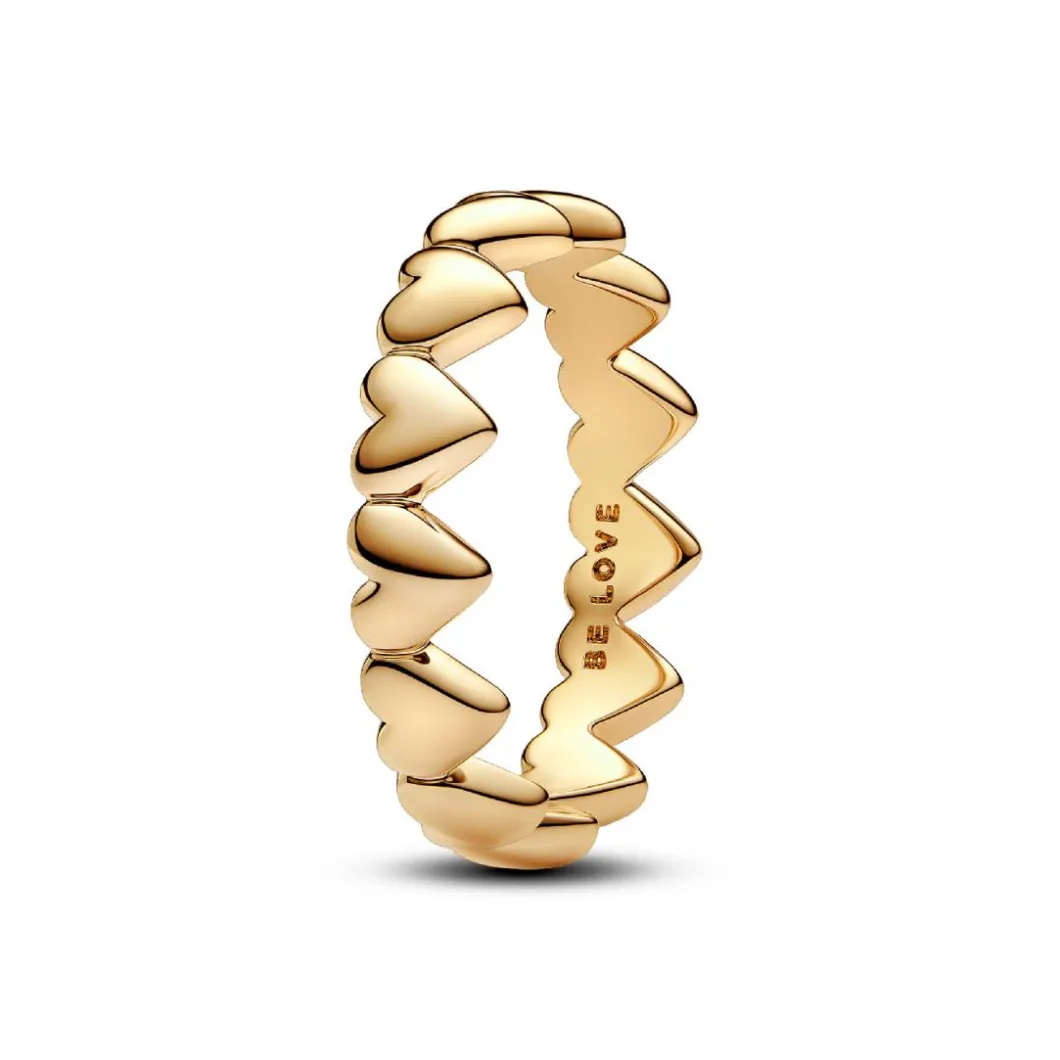 Issue de la collection Pandora Moments, cette bague Farandole de Cœurs Dorés est spécialement conçue pour les femmes. Fabriquée à partir de métal doré à l’or fin 585/1000, elle illustre une succession harmonieuse de cœurs entrelacés à travers tout le tour du bijou. Cette pièce élégante rehaussera votre style avec une touche de romantisme et de sophistication. Idéale pour toutes occasions, elle saura captiver tous les regards.