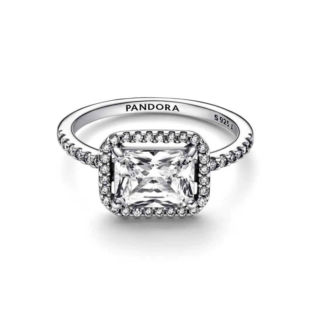 Portée en accumulation ou en bague de cocktail, la Bague Pandora Timeless – Halo Rectangulaire Scintillant sublime les gestes avec élégance et sophistication.