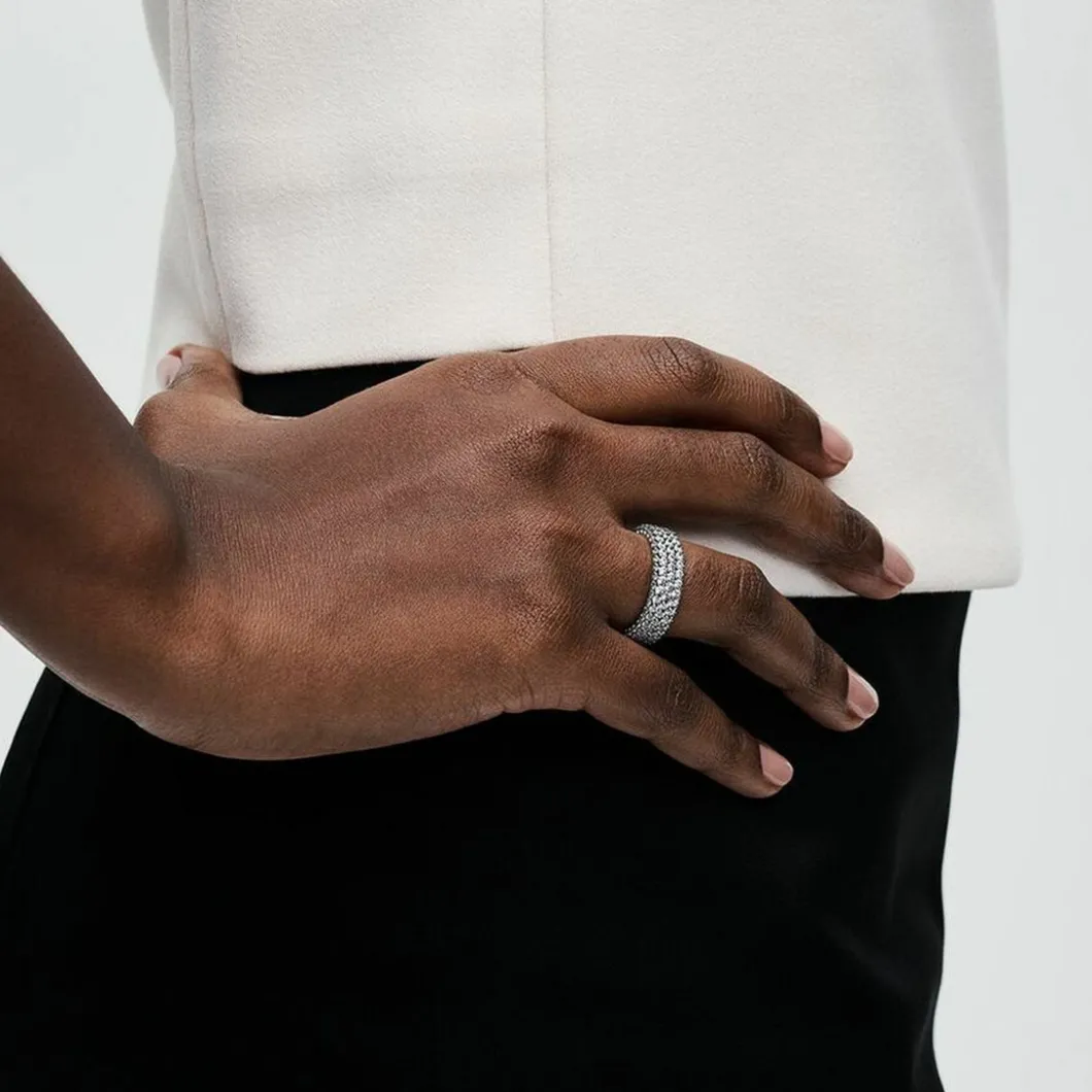 Brillez avec chic et modernité avec cette Bague Triple Rang Pavé – Pandora Timeless : une création éblouissante composée de strass travaillé avec originalité.