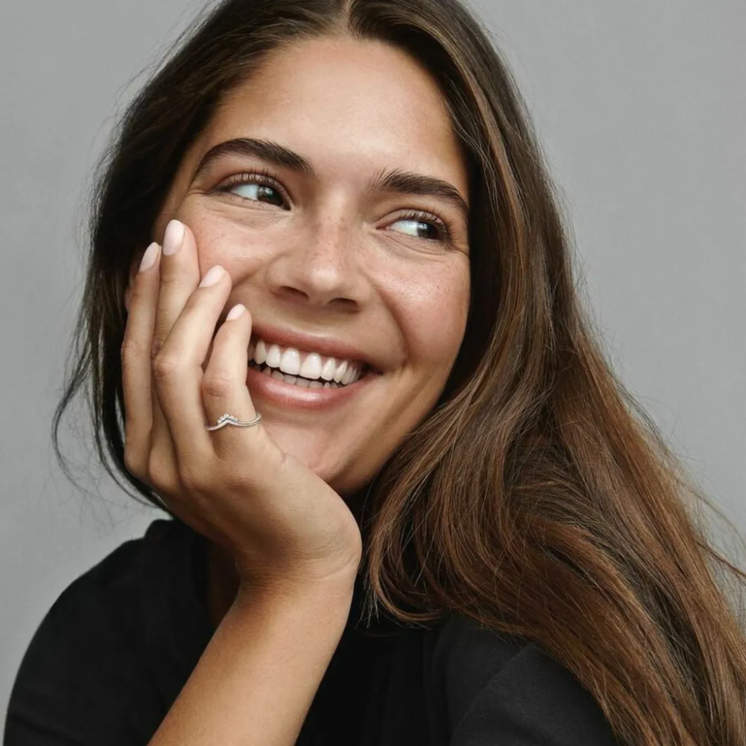 Faites sensation partout où vous irez avec cette bague Vœu Diadème finie main dans un argent 925/1000e lisse et poli. Cette bague chevron empilable est ornée de cinq oxydes de zirconium cubiques incolores sertis griffe qui forment un diadème délicat au sommet de la bague. N’hésitez pas à la porter seule ou, pour un look plus spectaculaire, à l’empiler avec d’autres bagues chevrons confectionnées dans des métaux différents comme, par exemple, en argent 925/1000e et en Pandora Shine un métal doré à l’or fin 750/1000e.