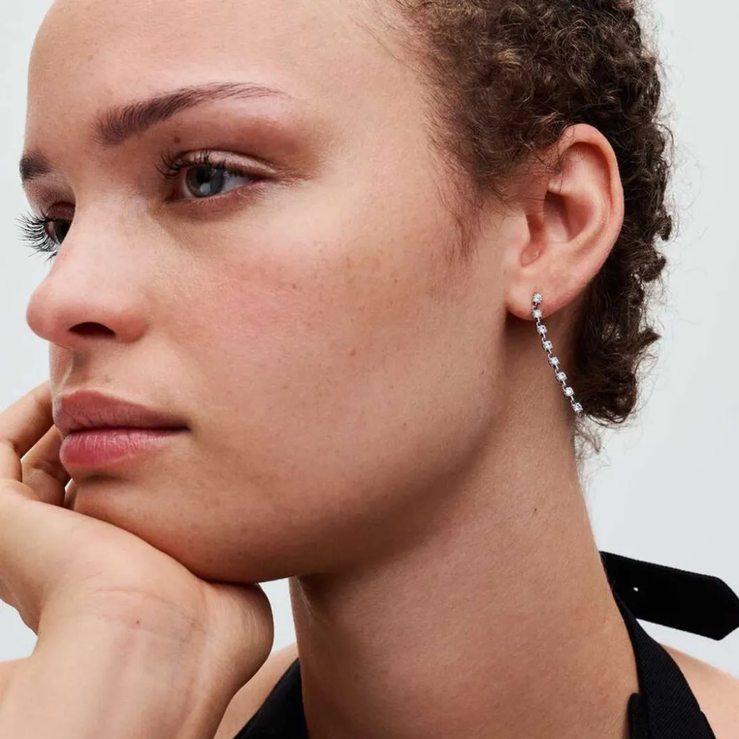Voici les magnifiques boucles d’oreilles Pandora pendantes en argent 925/1000, de la collection Pandora Timeless. Ces bijoux, agrémentés d’oxyde de zirconium, sont du plus bel effet avec leur clarté étincelante. Ces boucles d’oreilles pendantes en argent sterling révèlent un charme indéniable et une élégance sans pareille. Une pièce exceptionnelle à ajouter à votre collection.