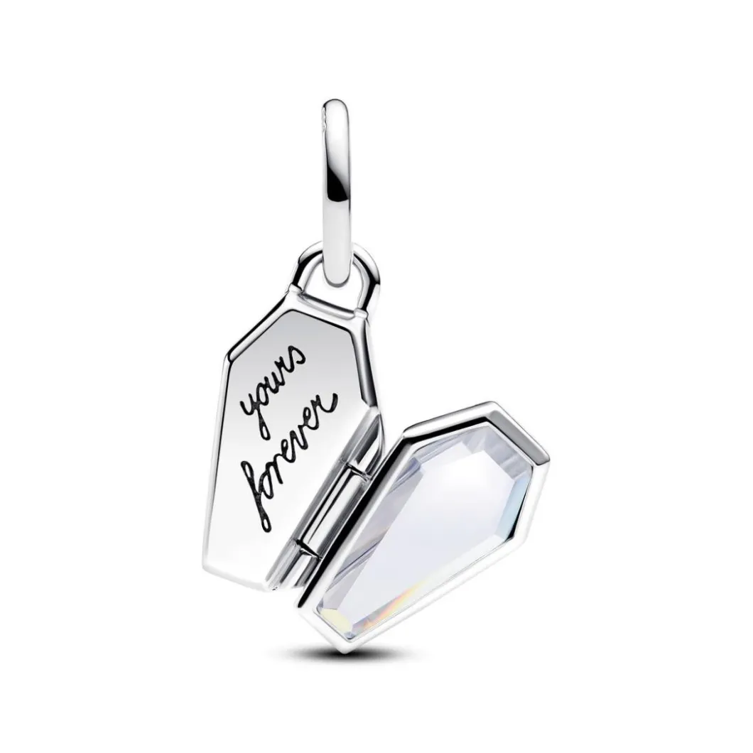 Ce charm pandora femme est un bijou unique et impressionnant. Il représente un cercueil d’un brillant argent 925/1000, avec une ouverture pour dévoiler l’interieur. Une pierre étincelante d’oxyde de zirconium claire est enchâssée à l’intérieur pour ajouter de l’éclat. Orné d’émail pailleté d’une magnifique couleur bleu sarcelle phosphorescent, ce charm donne une confiance féminine et élégante. Cette œuvre d’art est conçue par le célèbre créateur, Pandora et se décline en une seule couleur d’argent. Le type du produit est ‘Charms’. Avec un design élégant et sophistiqué, ce charm captivante peut être un ajout parfait à votre collection de bijoux.