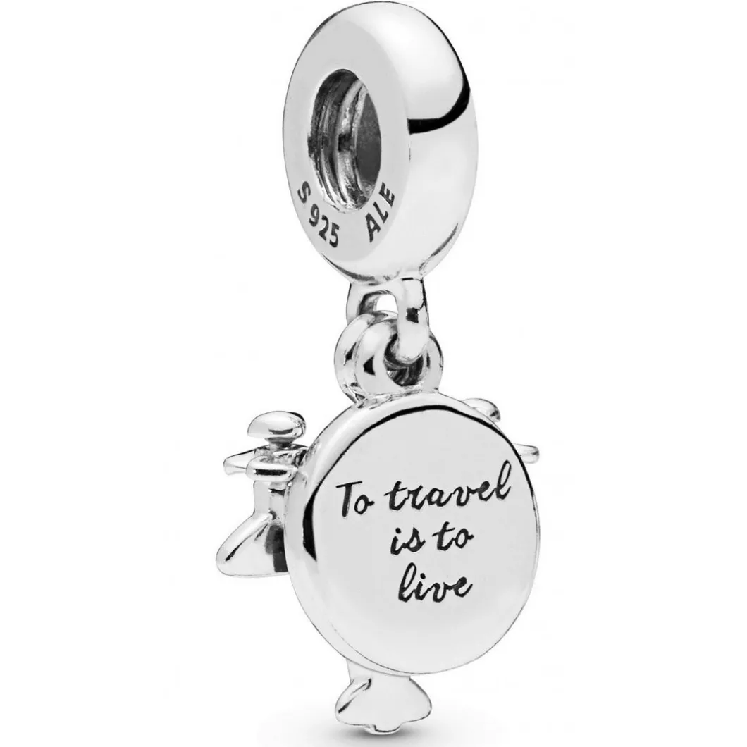 Craquez pour ce Charms Pandora Voyage 798027CZ. Suspendu à la balle, un petit avion s’envole vers des destinations plus chaudes. Un disque d’argent séparé représente des nuages de séparation en émail blanc et bleu scintillant. Le dos est gravé de la citation ‘Voyager c’est vivre’. avec des nuages se séparant sur un disque d’argent séparé derrière. Une seule pierre cubique en zircone orne la balle.