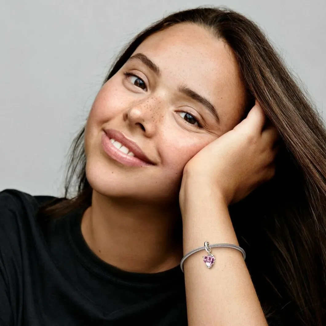 Bijou symbolique sur le thème de la famille, le Charm Pendant Cœur et Arbre de Vie Rose – Pandora Moments sublime avec chic et originalité bracelet ou collier en maille serpent.