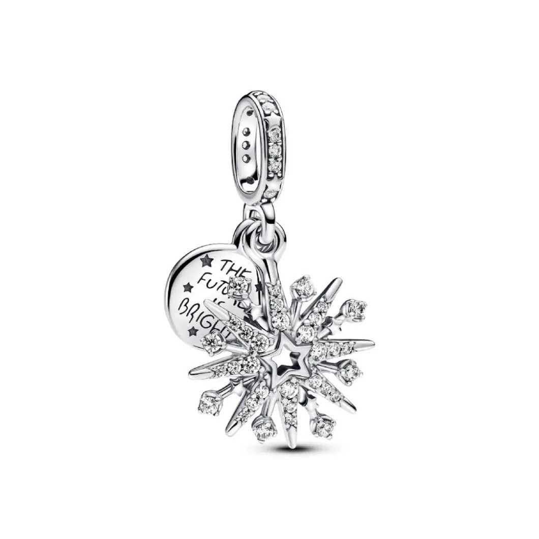 Ce charm double feu d’artifice est un bijou délicat de la collection Pandora Moments. Créé spécifiquement pour les femmes, sa conception est en argent sterling 925/1000. Le détail luxueux de ce charm est sa garniture de zircon cubique, qui reflète la lumière comme un véritable feu d’artifice. Appartenant à la catégorie des charms et perles, ce bijou se distingue par son design étincelant qui apportera une touche de glamour à votre bracelet Pandora. Le rendu final est un charm d’une beauté éblouissante et d’une qualité incomparable, l’oxyde de zirconium ajoutant une brillance supplémentaire. Ce charm de type Charms, est irrésistiblement attirant. Sa réalisation soignée et son design unique font de lui un cadeau idéal pour faire plaisir à une femme chère à votre coeur.