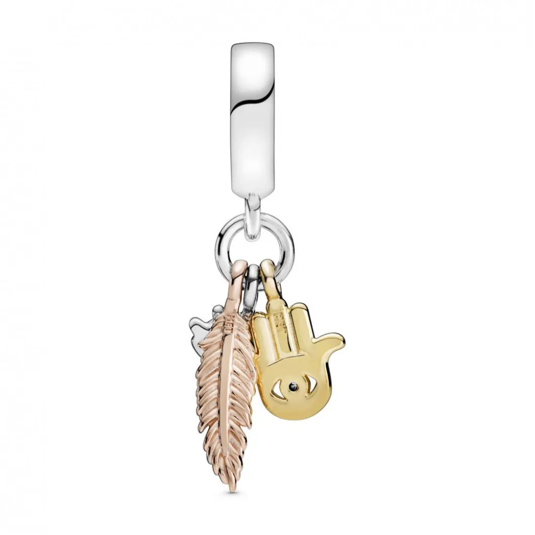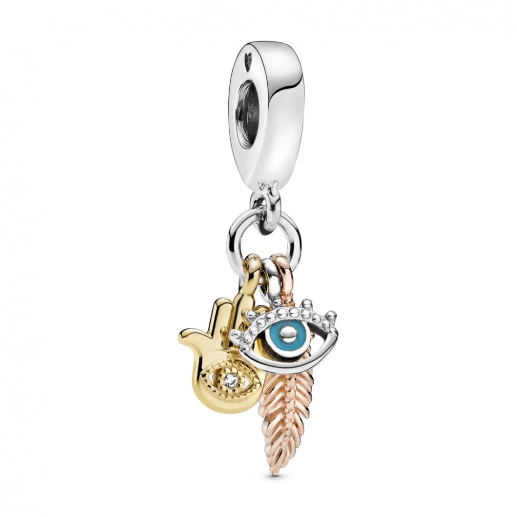 Caractéristiques Charm Pendant Spirituel Main de Fatma, oeil de la Providence et Plume Pandora Moments