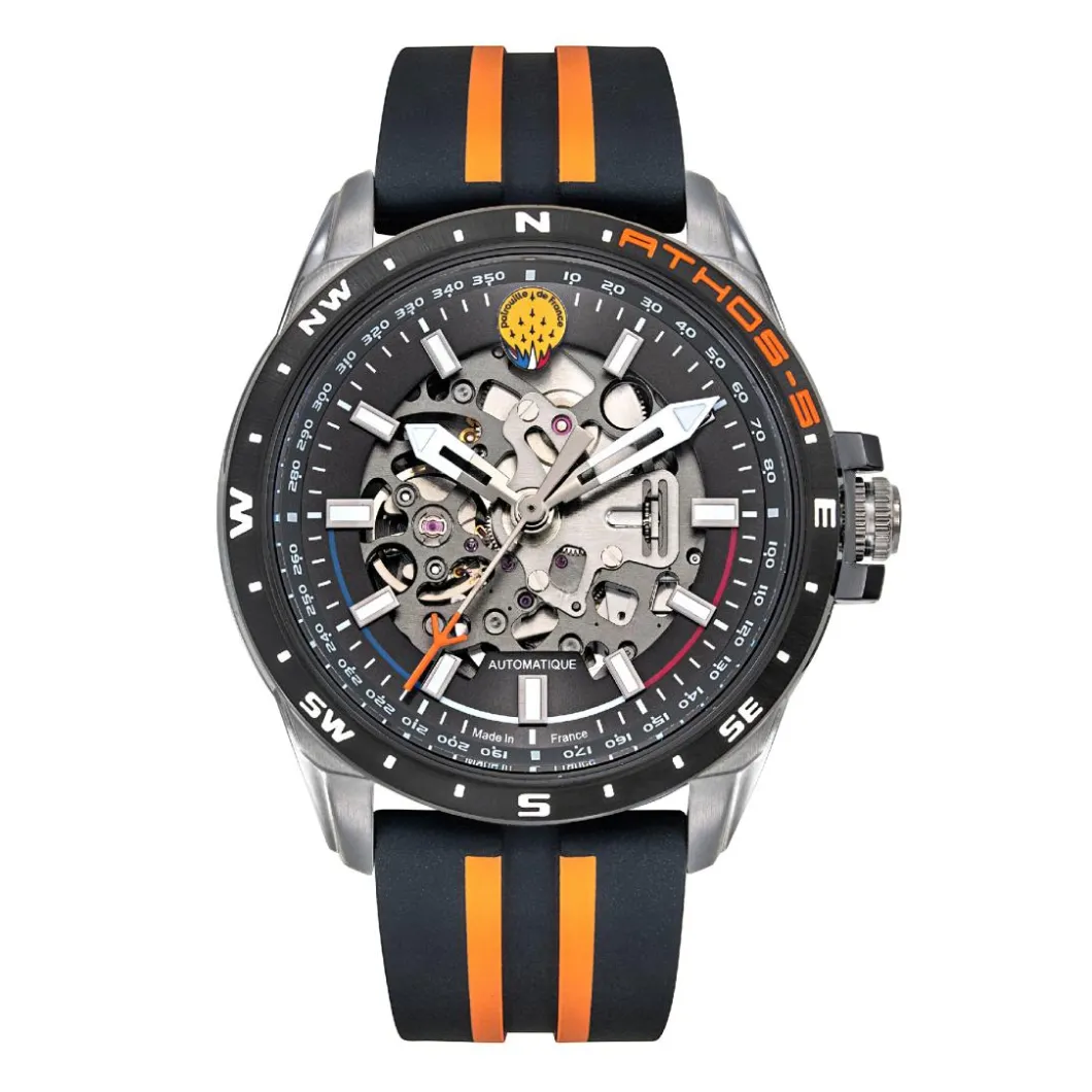 Chaque modèle a été pensé et réalisé pour répondre aux valeurs de l’Athos dont il est l’effigie et s’intègre parfaitement dans l’unité de la Collection Montres Patrouille de France.
