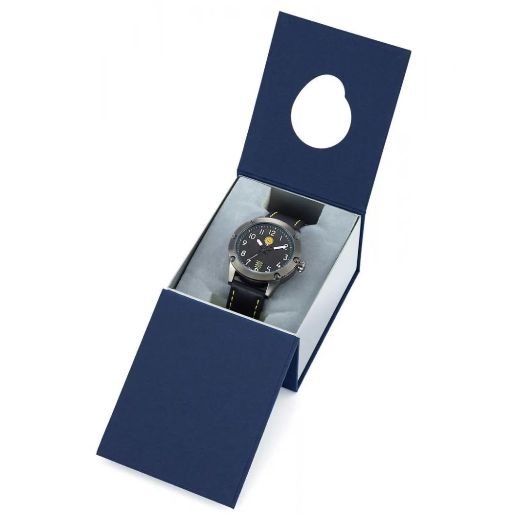 Modèle conçu en hommage des mécaniciens de Patrouille de France, laissez-vous tenter par cette Montre Homme 668512. Elle combine un cadran noir texturé avec des détails de jaune tout comme son bracelet en cuir.
