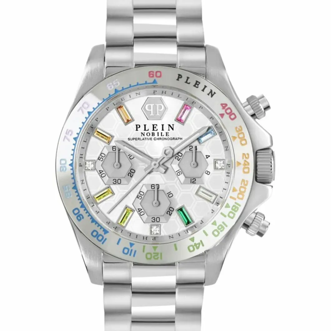 Cette élégante Montre Femme de la prestigieuse marque Philipp Plein arbore un boîtier argenté séduisant et sophistiqué. Avec son diamètre de 38 mm, elle s’adapte parfaitement à tous les poignets. Cette montre est dotée d’une fonctionnalité de chronographe, vous permettant de mesurer le temps avec précision tout en affichant une allure chic. Avis aux amateurs de montres à la fois pratiques et élégantes, ce modèle est fait pour vous.