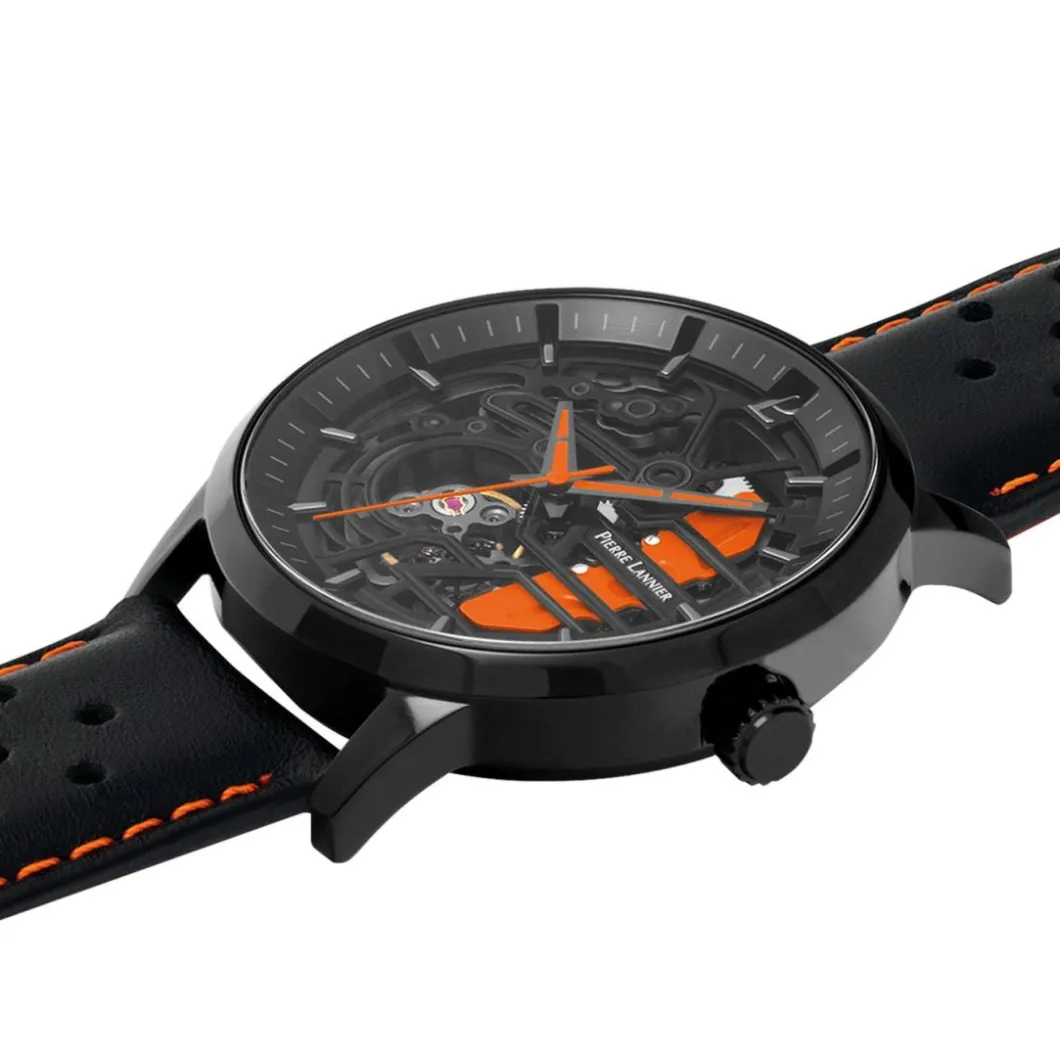 Dévoilant un design signature, la montre homme Pierre Lannier 341A455 Paddock arbore une sophistication racée. Au cœur de son boîtier rond de 43 mm en acier se trouve un précis mouvement automatique indiquant l’heure sur un affichage analogique. Fabriqué dans une teinte très foncée, le boîtier noir complète parfaitement le bracelet en cuir de la même couleur, attaché par une boucle simple pour une tenue sûre. Avec une étanchéité allant jusqu’à 5 ATM, cet accessoire révèle autant de résistance que d’élégance. Son verre minéral protège efficacement toute la mécanique de ce majestueux bijou.