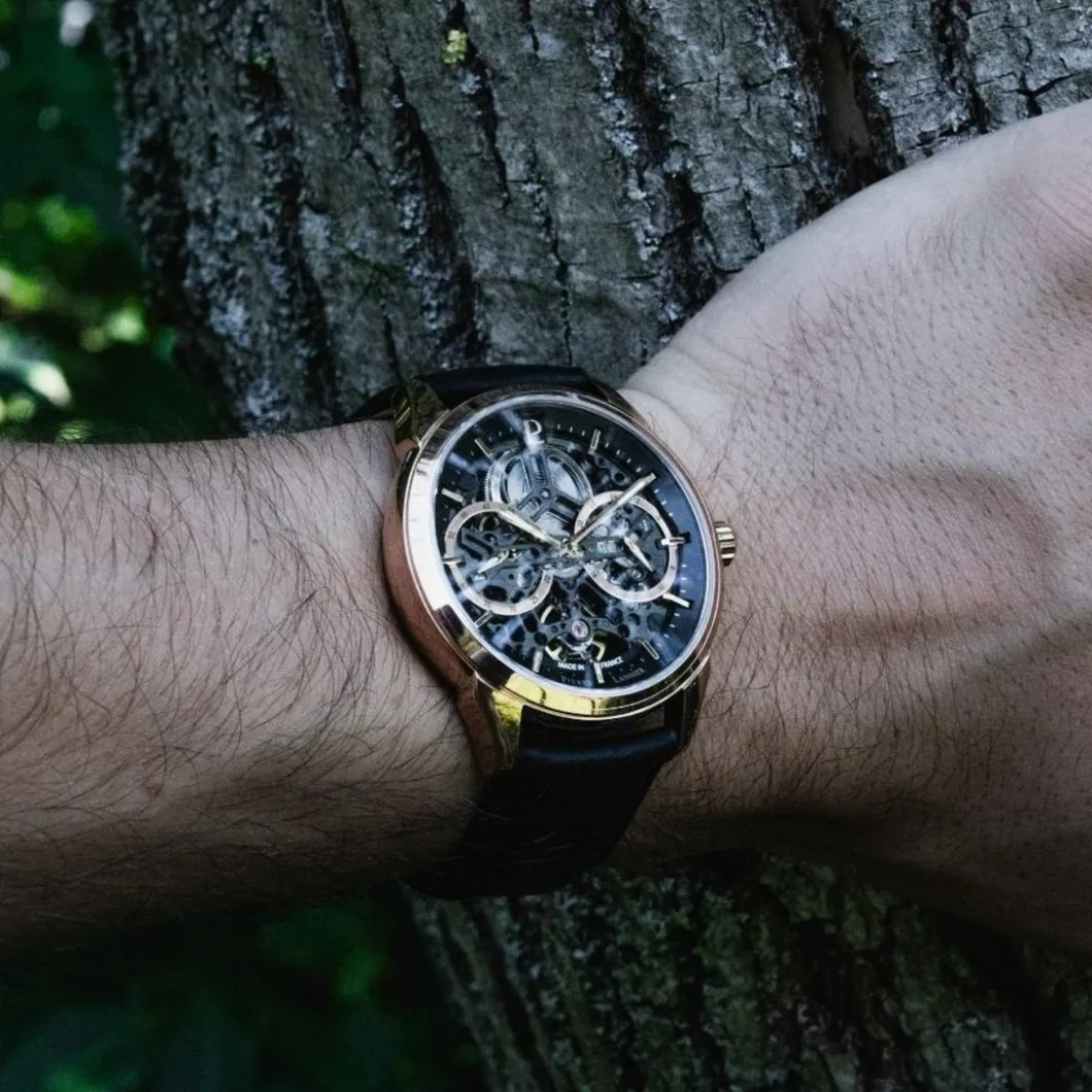 Découvrez la Montre Homme Pierre Lannier – 347A233 Monarck, un splendide accessoire de la marque Pierre Lannier qui ajoute une touche d’élégance à toute tenue masculine. Son boîtier rond de 43 mm, en acier, arbore une couleur doré rose qui crée un bel contraste avec le bracelet en cuir véritable de couleur Noir. Son mouvement automatique assure une précision fiable de l’heure. L’affichage analogique est protégé par un verre minéral résistant. L’étanchéité de 50 m rend cette montre adaptée aux activités quotidiennes. Elle est dotée d’une boucle simple pour une fixation facile et sécurisée. Son design sophistiqué saura séduire les hommes modernes à la recherche d’un style à la fois chic et décontracté.