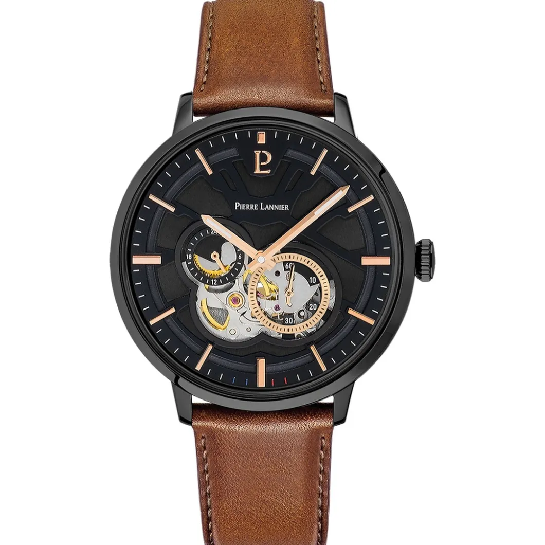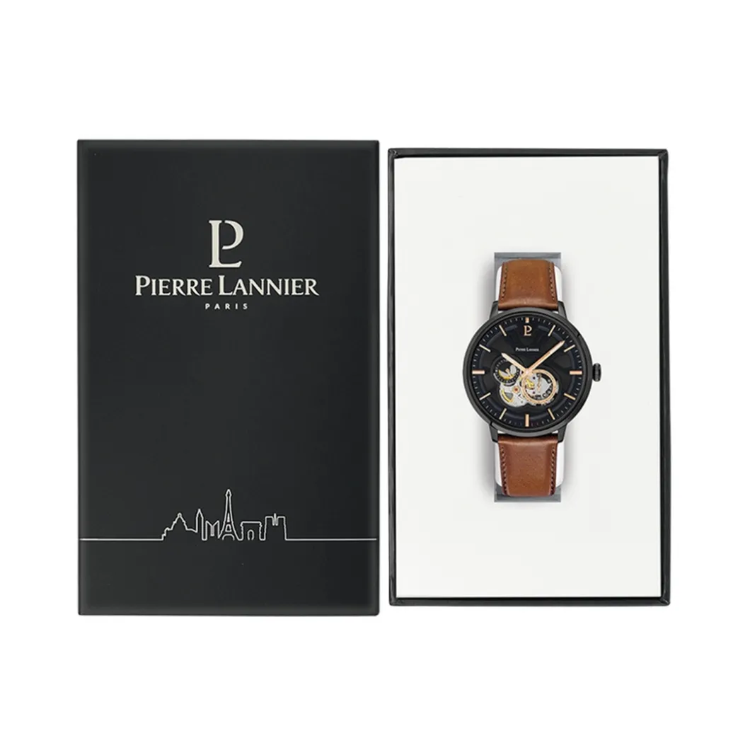 Craquez pour cette Montre 335B434 Pierre Lannier TRIO. Elle possède un boîtier noir en acier et un cadran analogique à coeur ouvert.