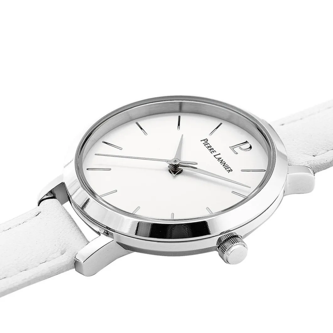Rehausser votre look avec cette belle Montre pour femme 034N600 avec bracelet en cuir blanc de la marque Pierre Lannier. Son bracelet blanc en cuir met en valeur l’éclat de son boîtier argenté pour un rendu des plus chic. Tendance, elle sera votre alliée de tous les jours pour égayer votre poignet.