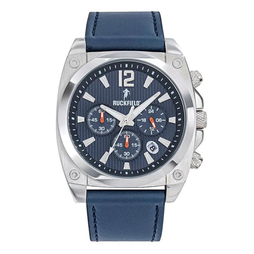 La Montre Homme RUCKFIELD – 685224, de couleur bleu, est un accessoire de mode masculin d’exception. Son boîtier rond en acier argenté de 42 mm de diamètre met en valeur l’écran analogique. Le bracelet en cuir bleu apporte une note de sophistication et de robustesse. Étanche jusqu’à 100 m, elle comprend plusieurs fonctionnalités comme le chronographe et le dateur. Son mouvement à quartz assure une précision de l’heure irréprochable. Sa fermeture à boucle simple assure un port sécurisé et confortable. Le verre minéral de la montre résiste aux rayures et aux chocs légers. Un produit polyvalent pour l’homme élégant et actif.