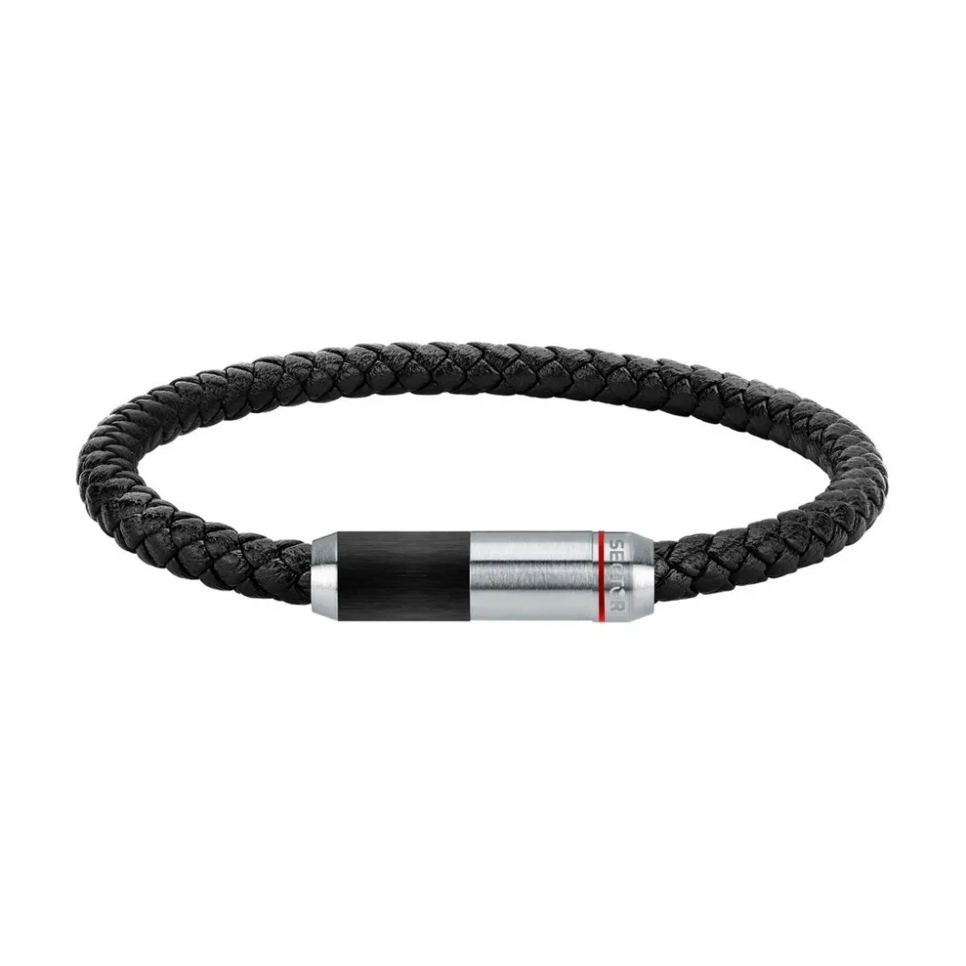 Avec son design original, ce Bracelet noir pour homme en cuir habillera avec classe votre poignet. Il se démarque avec son cuir noir magnifiquement tressé et son fermoir bicolore en acier portant fièrement le logo de la marque Sector. Assurément tendance, il s’harmonise sans problème à tous les looks.