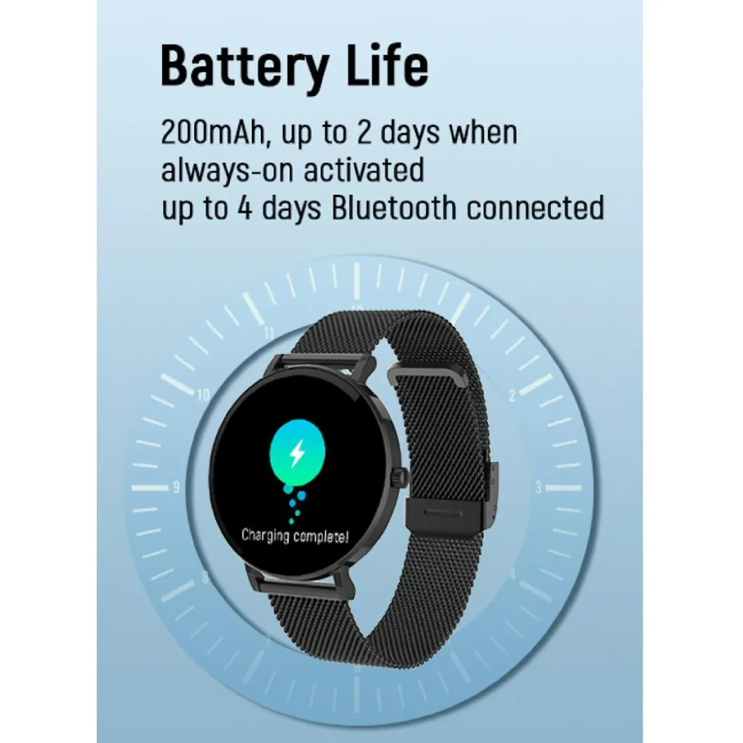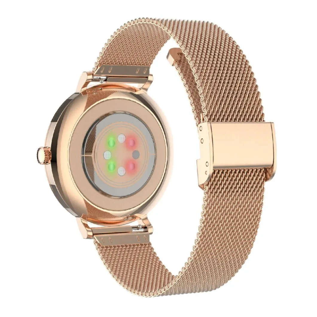 La Smarty Super Slim Amoled – SW079A est une montre connectée mixte d’une élégance indéniable. De forme rectangulaire, son boîtier de 42 mm en métal est de couleur doré rose, parfaitement assorti à son bracelet en acier de même teinte. Son affichage digital est clair et lisible, facilité par la qualité du verre minéral. Actionnée par un mouvement quartz, cette montre fait preuve d’une précision et d’une fiabilité à toute épreuve. Elle résiste à une profondeur de 50 mètres sous l’eau, ce qui la rend idéale pour les activités aquatiques. Enfin, son système de fermeture est une boucle déployante, simple et efficace. Les hommes et les femmes apprécieront ce bijou technologique pour son style épuré et contemporain.
