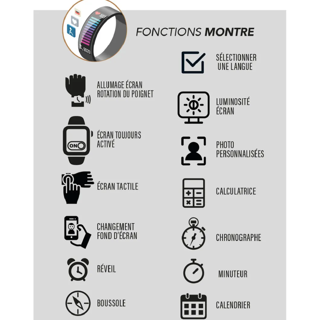 Caractéristiques Montre Connectée Smarty Noir