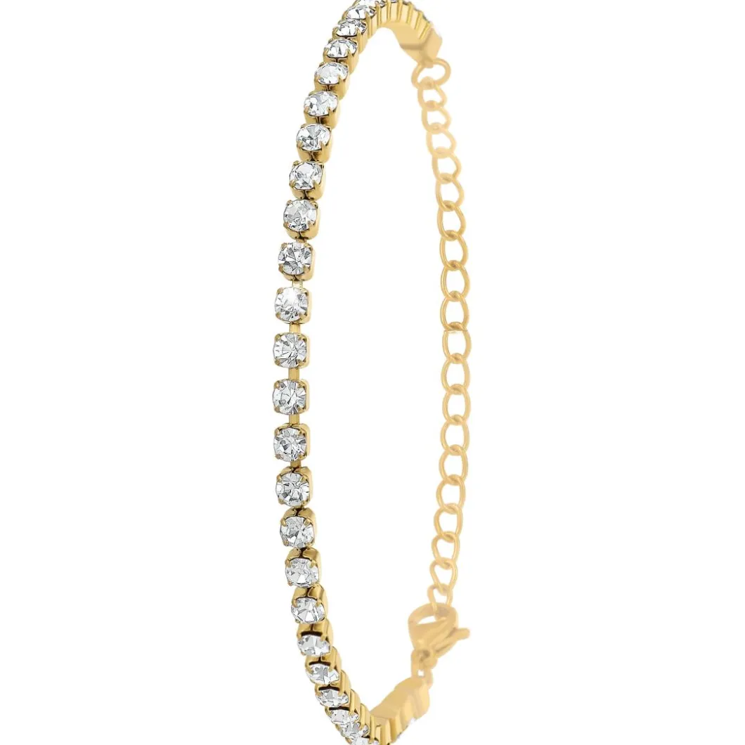 Éclatant de féminité et de glamour, ce bracelet pour femme de la marque So Charm révèle un charme indéniable. Finement plaqué d’une couleur Doré, ce bijou est composé d’acier de haute qualité, promettant une longue durée de vie et une brillance étincelante. Son raffinement est amplifié par l’incrustation de strass étincelants tout le long de son design élégant et sophistiqué. Cette superbe pièce ajoutera une touche de sophistication à toutes vos tenues, qu’elles soient décontractées ou formelles. Ce bracelet est le choix idéal pour les femmes qui savent apprécier la beauté des détails discrets mais captivants.