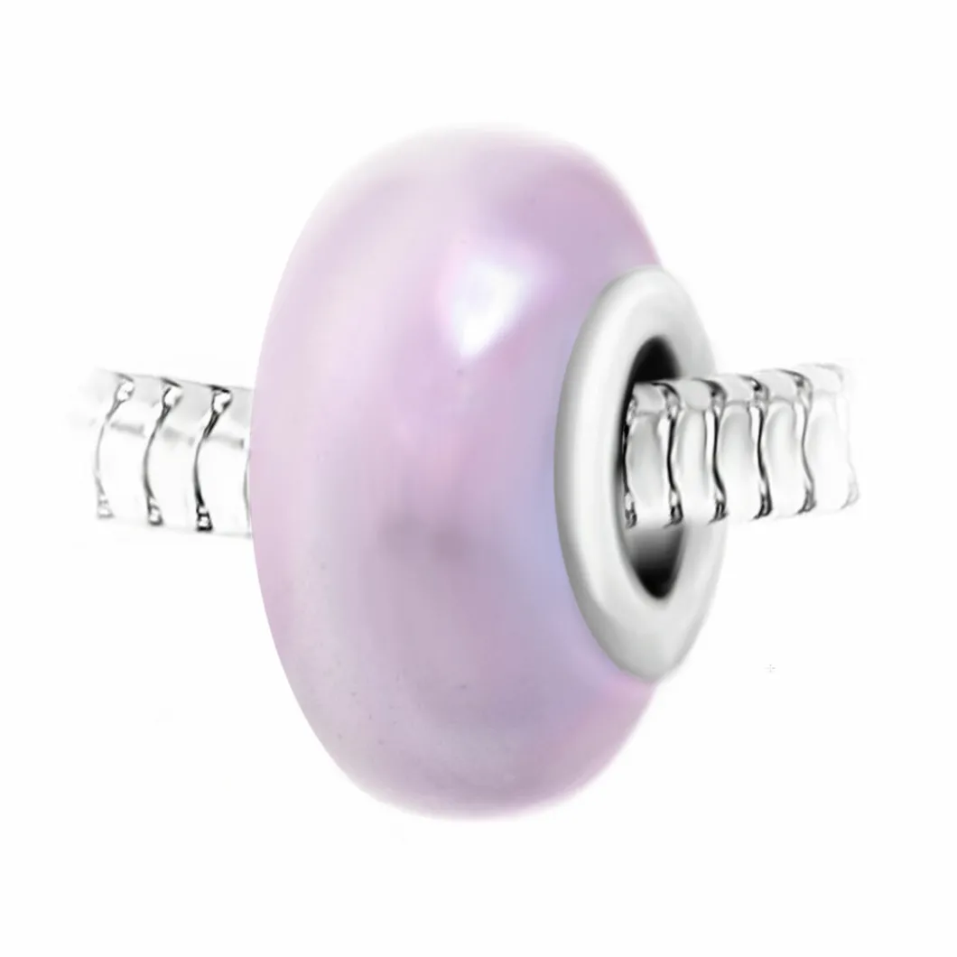 Charm perle verre nacré rose et acier par SC Crystal. Acier inoxydable (garanti sans nickel). Dimensions : 13 à 14 mm. Compatible avec les marques Pandora, Chamilia, … . Charm perle SC Crystal imaginez et créez vos propres bijoux !