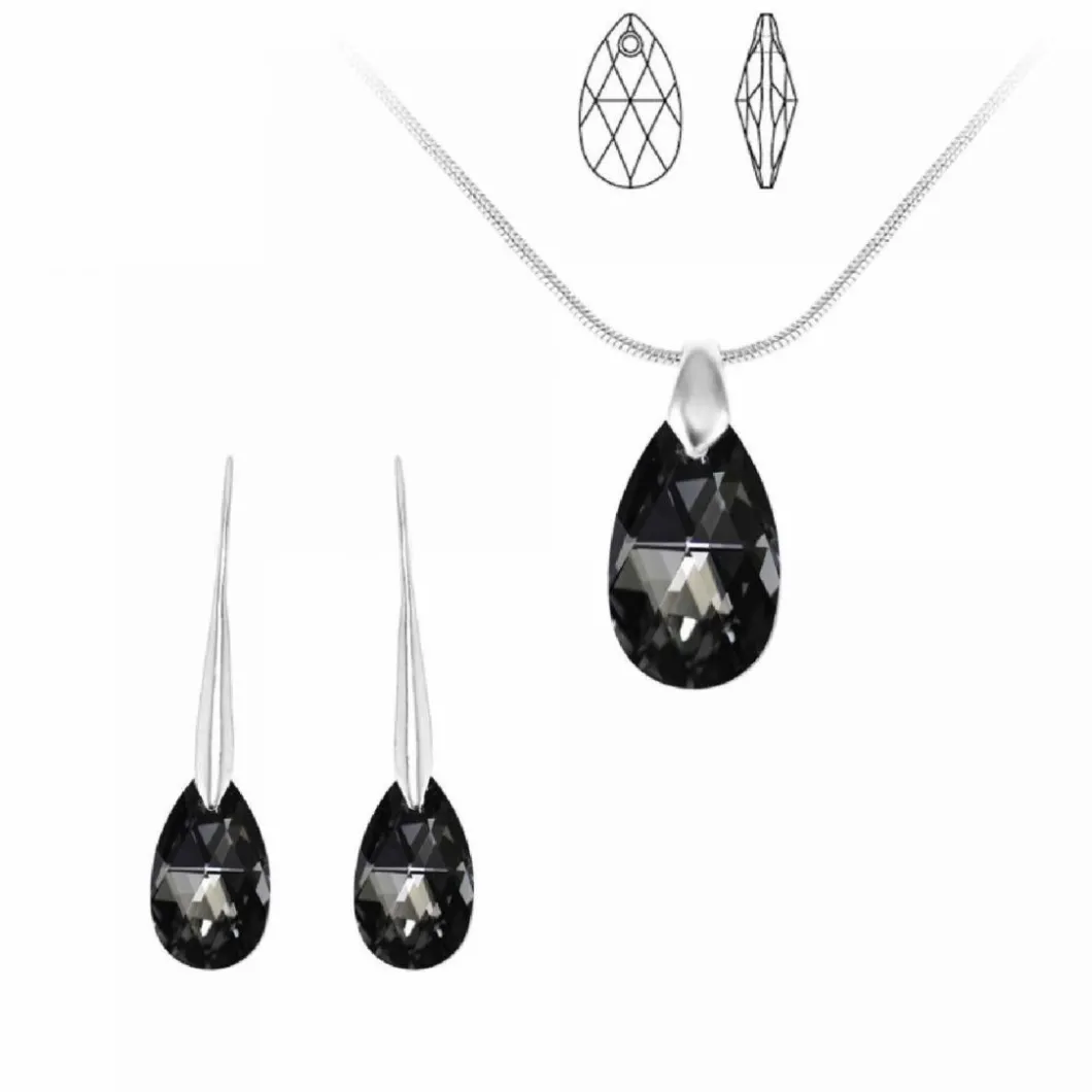 Collier et boucles d’oreilles So Charm BS003-SN016+BS010-SE003-SINI en argent plaqué et cristal noir.
