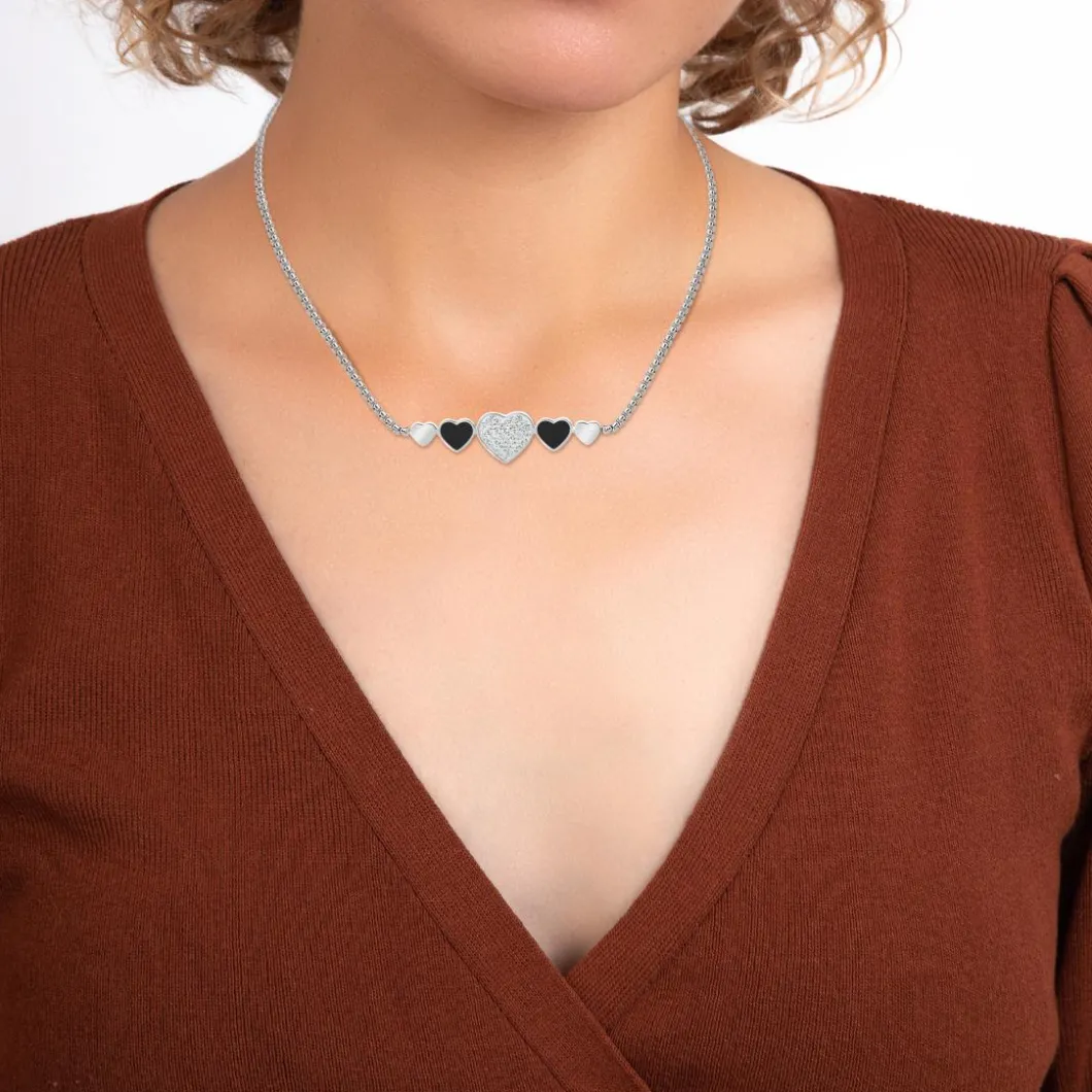 Le magnifique collier pour femme de la marque So Charm est un bijou qui ne passera pas inaperçu. Le design élégant avec son pendentif en forme de cœur améliorera votre style en toute occasion. Fabriqué en acier de haute qualité, ce collier à la fois durable et élégant rend hommage à la beauté simple et intemporelle. Il est incrusté de strass étincelants qui captivent l’attention. Sa couleur argentée est particulièrement lumineuse et attrayante. Ce n’est pas seulement un collier, c’est une affirmation de soi. Ce bijou est conçu pour les femmes qui aiment exprimer leur originalité avec élégance et classe.