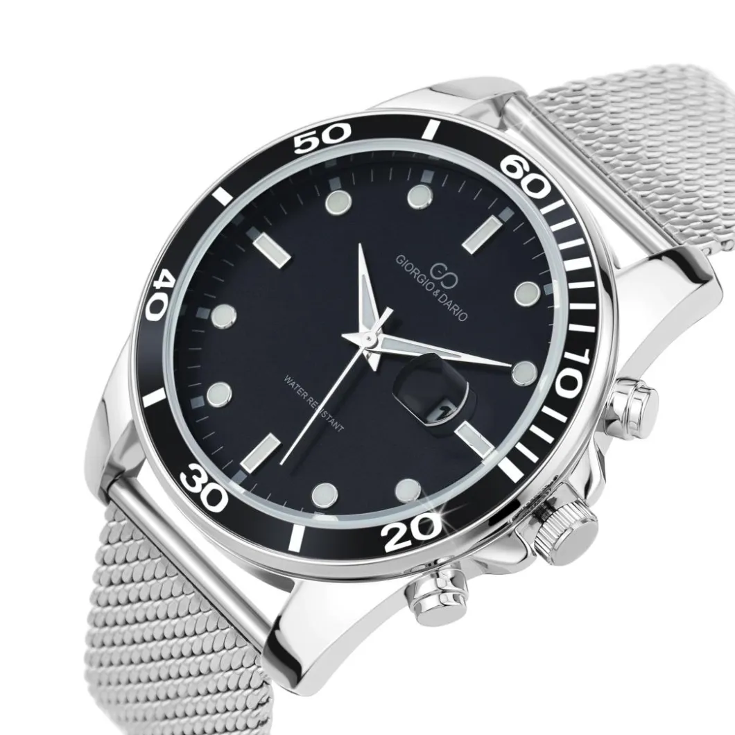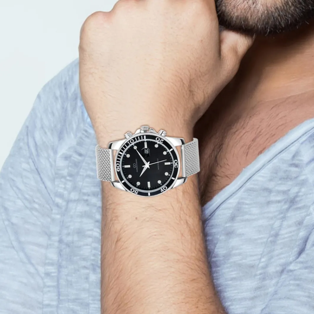 Caractéristiques Montre homme quartz ronde acier et fond noir