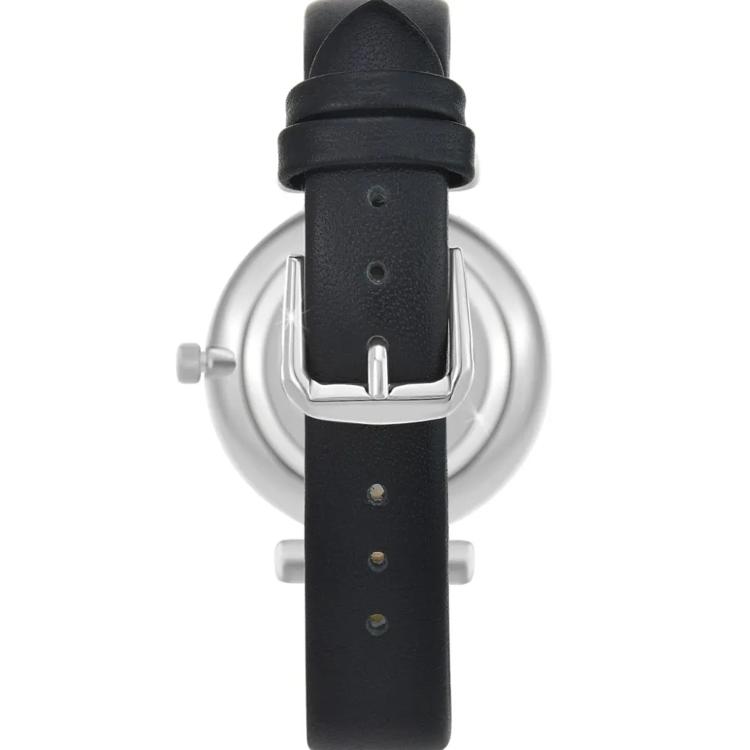 Élégance et sophistication décrivent parfaitement cette montre féminine Héléna So Charm. Son affichage analogique présente un boitier de couleur argent circulaire, abritant un véritable diamant noir en son centre pour une touche de luxe incomparable. Le bracelet noir, fabriqué en cuir de haute qualité, complète le design de cette montre avec une pointe de classicisme et de raffinement. Elle est animée par un mouvement à quartz, garantissant une précision irréprochable. L’image révèle une montre d’une exquise finesse, qui se porte à merveille avec n’importe quelle tenue. Un cadeau parfait pour une femme élégante et moderne.