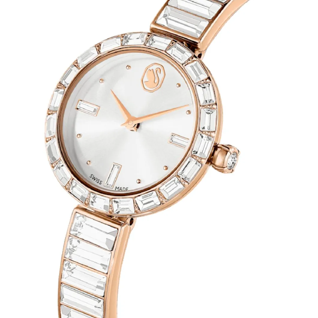 La Montre Femme Swarovski Montres Matrix Bangle – 5677484 se caractérise par un bracelet et un boîtier en acier d’un élégant doré rose. Son boîtier rond d’un diamètre de 25 mm abrite un affichage analogique. Propulsée par un mouvement quartz, cette montre de type boucle déployante pour femme dispose d’un verre minéral pour protéger le cadran. Assurément raffinée, cette pièce Swarovski fera une addition parfaite à toute collection de montres.