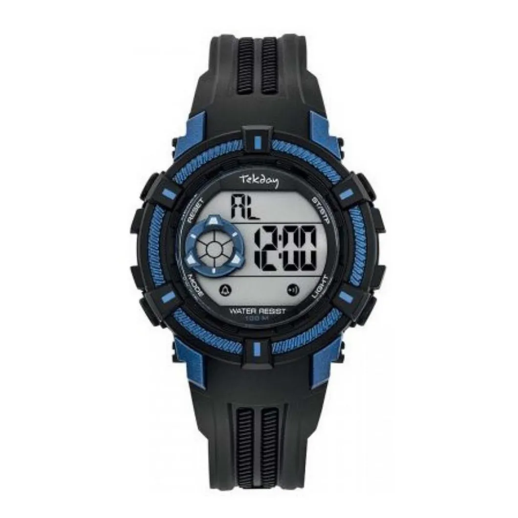 Montre Pour Enfant Tekday 654017 – Bracelet Boîtier Silicone Noir et Bleu