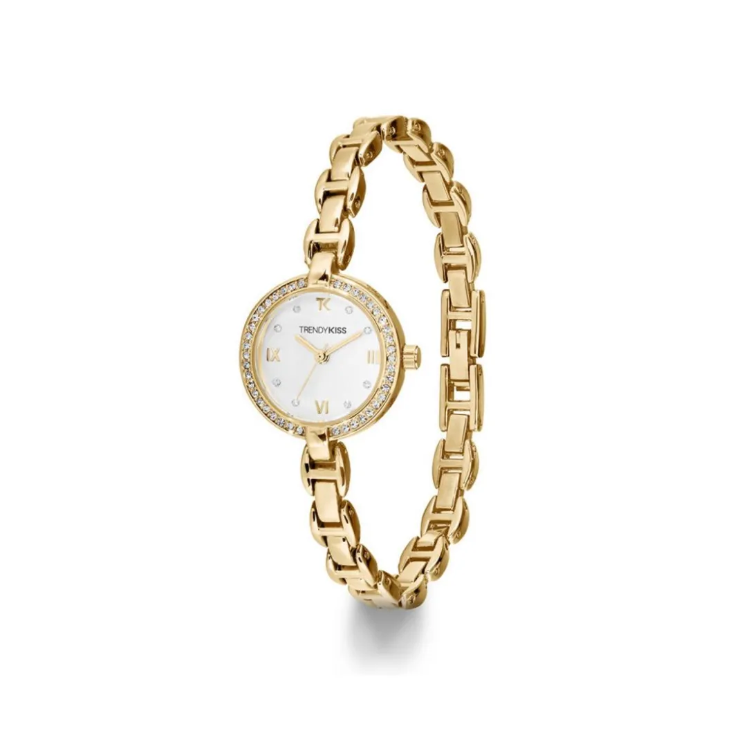 La montre femme Trendy Kiss Angèle – TM10163-02 allie élégance et originalité. Son boitier rond doré de 24 mm de diamètre, en métal robuste, abrite un cadran analogique précis, propulsé par un mouvement quartz. Le bracelet de cette montre est en acier de couleur dorée, ajoutant une touche de raffinement supplémentaire. Le verre minéral de haute qualité offre une excellente résistance aux rayures. Avec une étanchéité de 3 ATM, vous pouvez la porter en toute sécurité lors d’activités nautiques légères. Le design de cette montre est parfait pour les femmes modernes qui recherchent une montre tendance et durable.